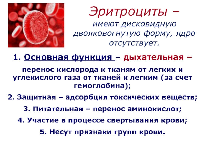 имеют дисковидную двояковогнутую форму, ядро отсутствует.