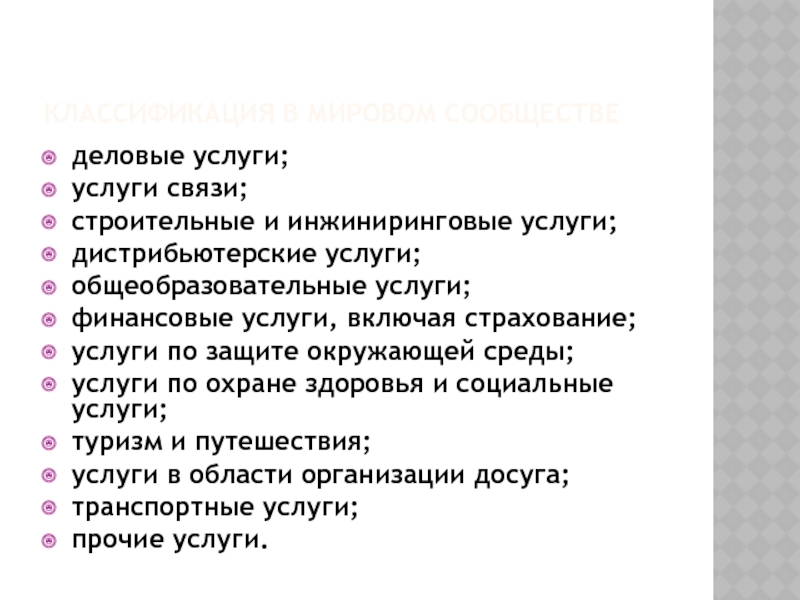 Слайд 4КЛАССИФИКАЦИЯ УСЛУГ