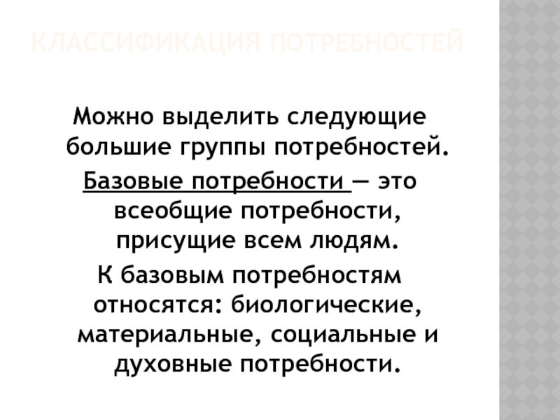 роли в образе жизни и всестороннем гармоничном развитии личности. Как уже отмечалось, по этим критериям можно выделить разумные и неразумные (извращенные) потребности, истинные и ложные, прогрессивные и разрушительные потребности.
