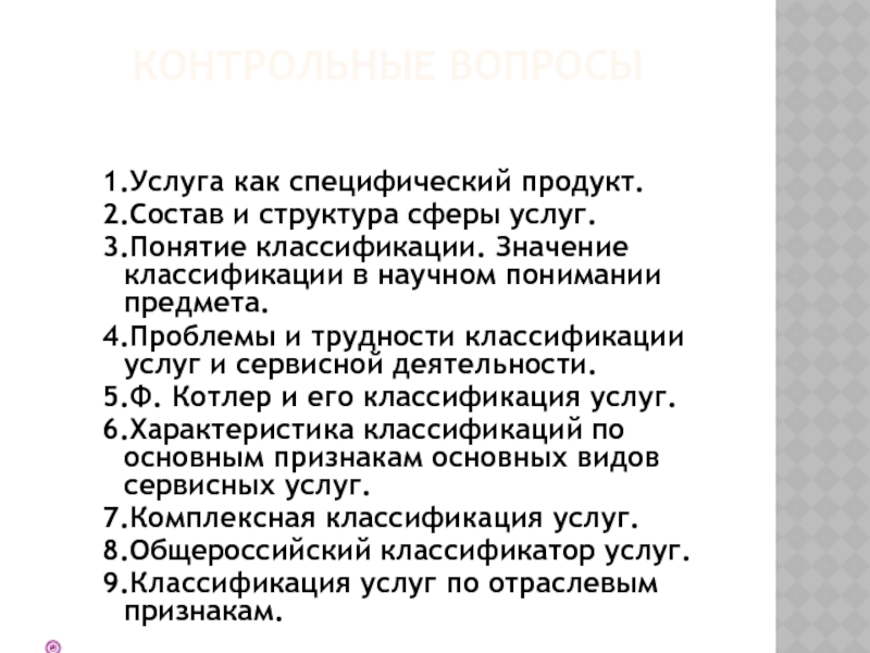 вопрос о структурировании сферы услуг, а также о классификации услуг