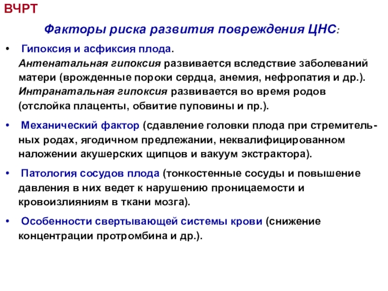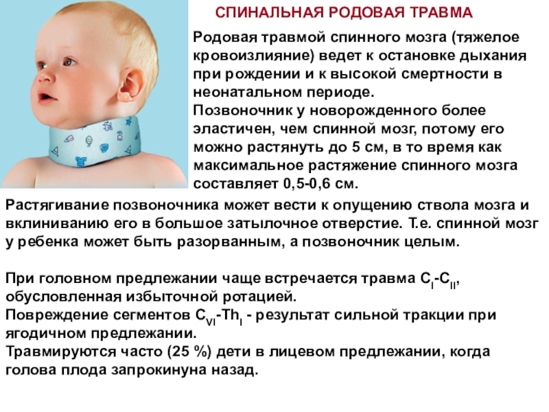 определяется не только навыками акушера, но и тем, каким плод вступает в роды. Продолжительная внутриутробная гипоксия, тяжелая интранатальная асфиксия увеличивают вероятность родового травматизма даже при нормальном течении родового акта.