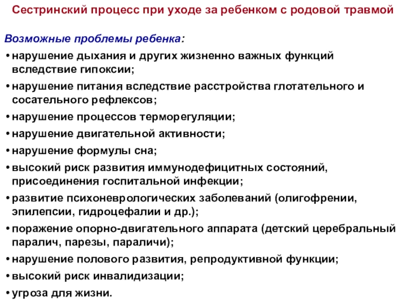 Сестринский процесс при уходе за ребенком с родовой травмой.