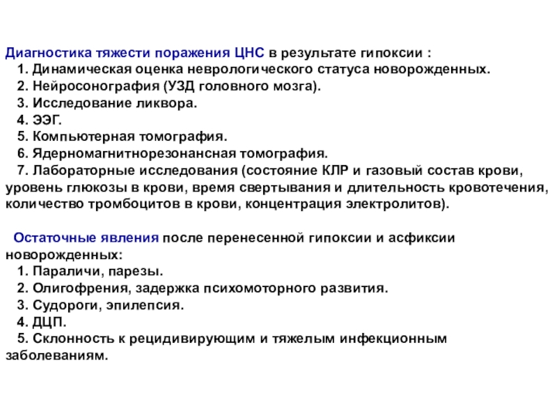 Слайд 30Диагностика тяжести поражения ЦНС в результате гипоксии :