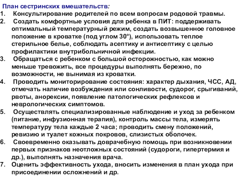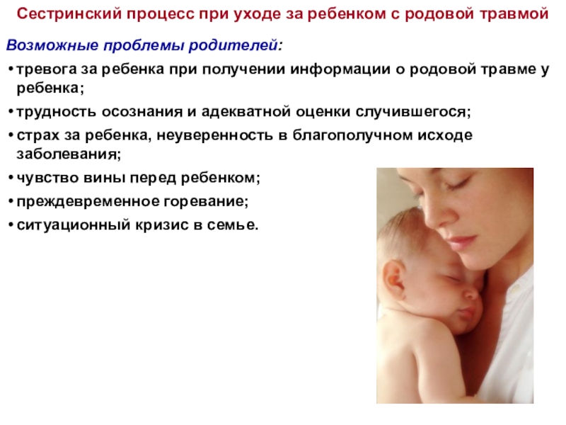 Слайд 24Сестринский процесс при уходе за ребенком с родовой травмой