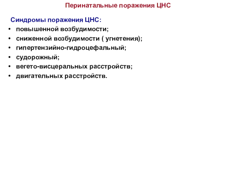 Перинатальные поражения ЦНС: синдромы, лечение, наблюдение за пациентом, этапы выхаживания, профилактика.