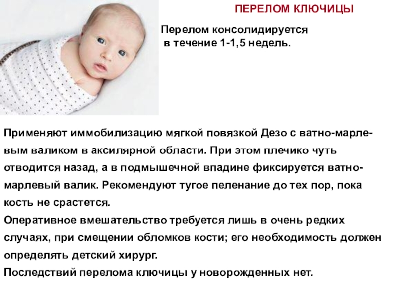 осмотре сразу после рождения на месте перелома можно заметить небольшую гематому,