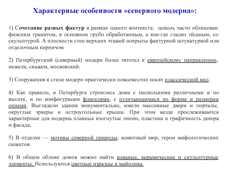 2) Петербургский (северный) модерн более тяготел к европейскому направлению, нежели, скажем, московский.