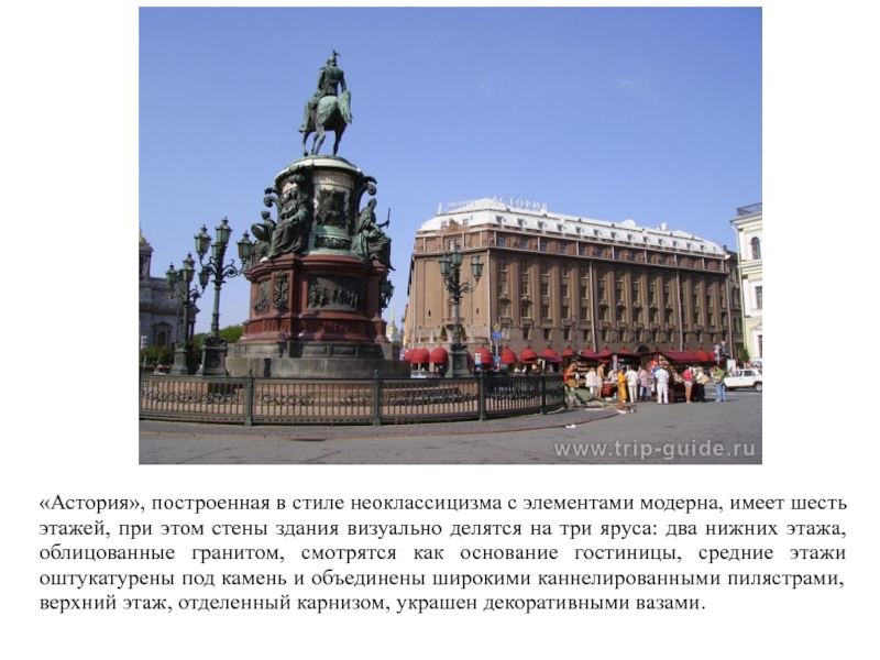 Слайд 44«Астория», построенная в стиле неоклассицизма с элементами модерна, имеет шесть