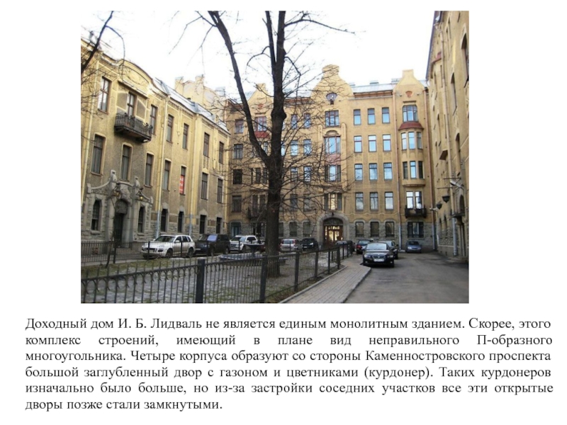 Слайд 5Доходный дом И. Б. Лидваль не является единым монолитным зданием.