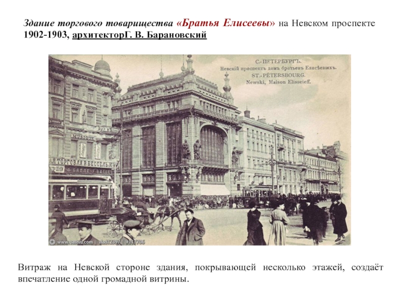 Слайд 29Здание торгового товарищества «Братья Елисеевы» на Невском проспекте