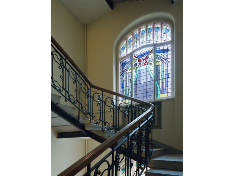 Витраж на Невской стороне здания, покрывающей несколько этажей, создаёт