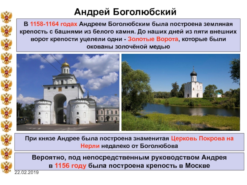 Шедевры культуры: Успенский собор во Владимире, Боголюбово, Золотые ворота во Владимире