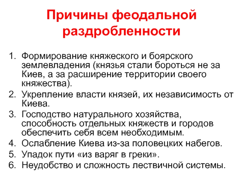 Формирование княжеского и боярского землевладения (князья стали бороться
