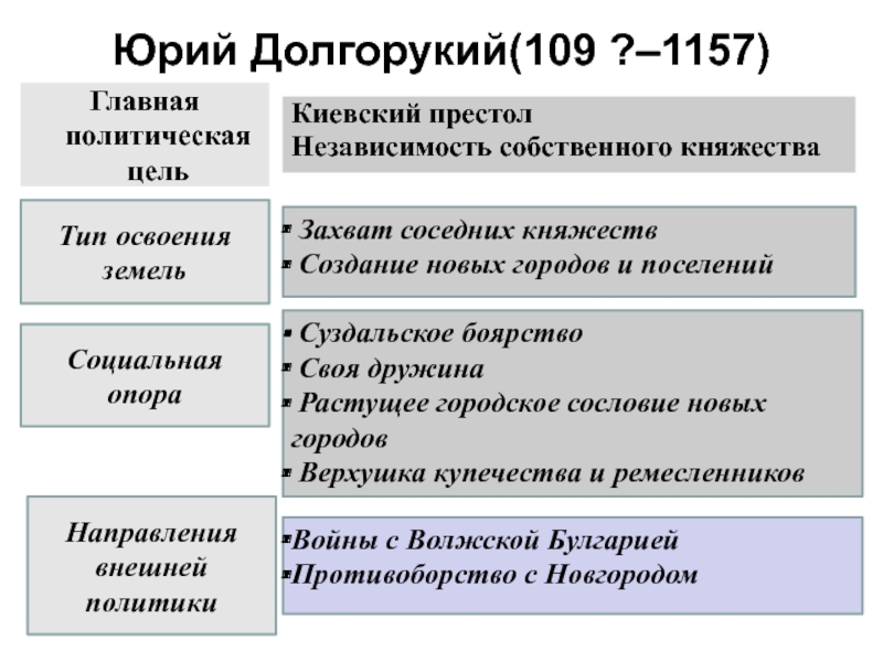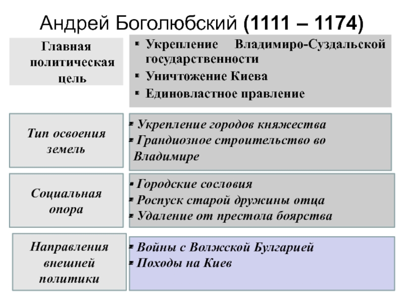 В отличие политики Андрея Боголюбского от политики Юрия Долгорукого?