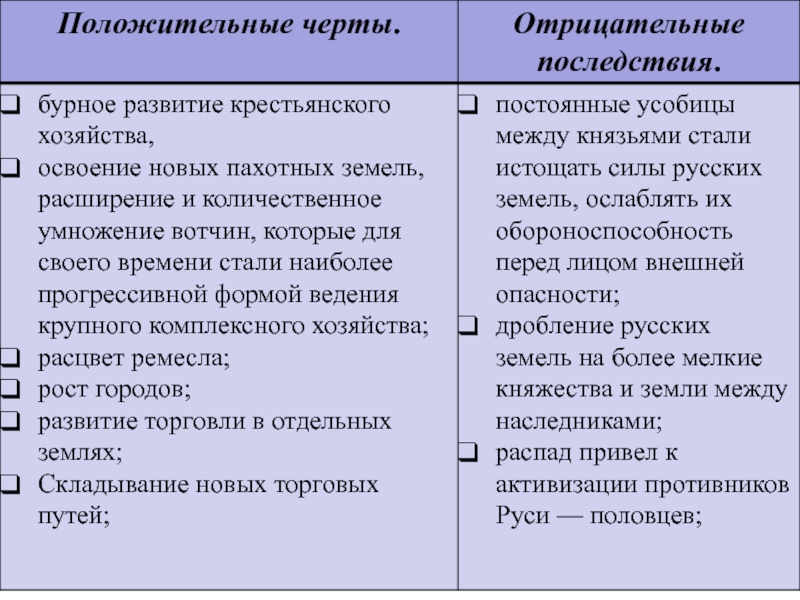 влияние и общерусская церковь. Киевские митрополиты являлись руководителями всей церковной организации. Церковь, как правило, выступала за единство Руси, осуждала междоусобные войны князей, играла большую миротворческую роль.
