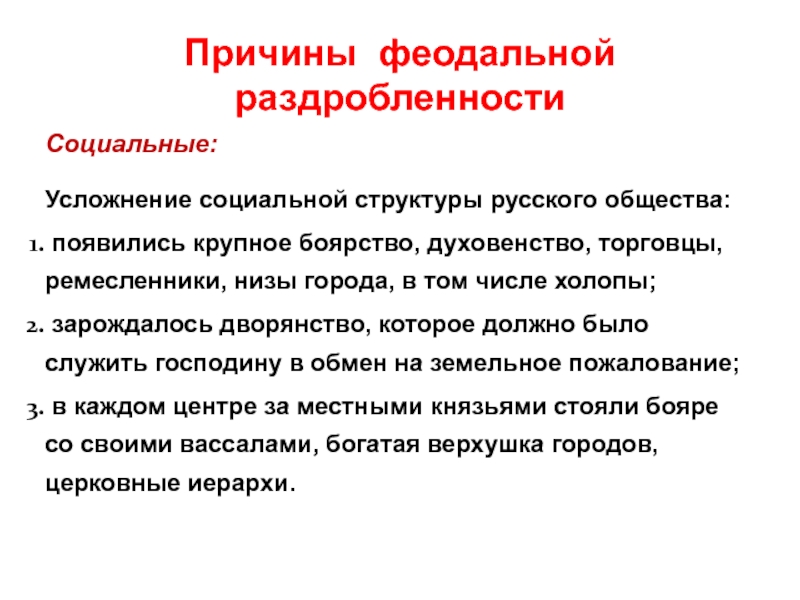 в каждом центре за местными князьями стояли бояре со своими вассалами, богатая верхушка городов, церковные иерархи.