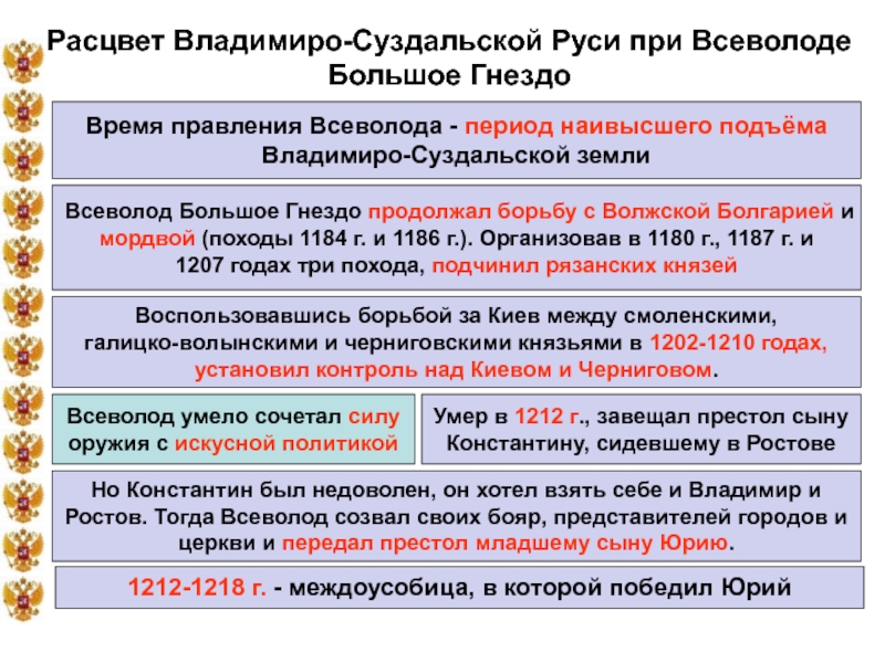 Слайд 59Расцвет Владимиро-Суздальской Руси при Всеволоде Большое Гнездо