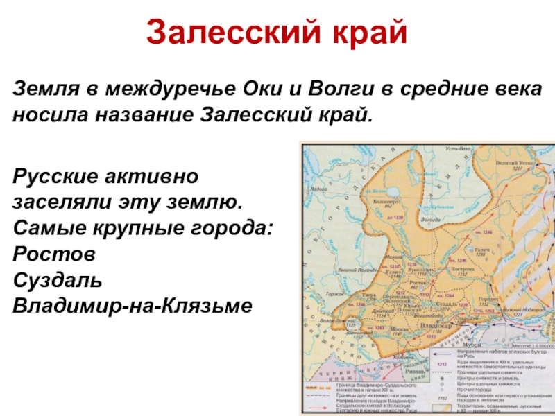 сюда прибывало с юга Киевской Руси, который к тому времени приходил в запустение. В результате половецких набегов и потери торговли по Днепру, население уходило на северо-восток. Здесь за лесами можно было спрятаться от степняков. Здесь также были плодородные почвы. Богатые южные города опустели, зато на северо-востоке поднялись на расчищенных от леса землях новые многолюдные города.
