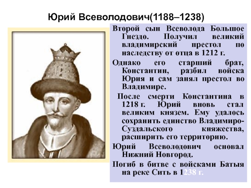 Слайд 65 Юрий Всеволодович(1188–1238)