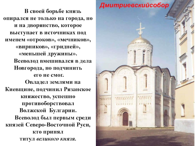 Всеволод был первым среди князей Северо-Восточной Руси, кто принял