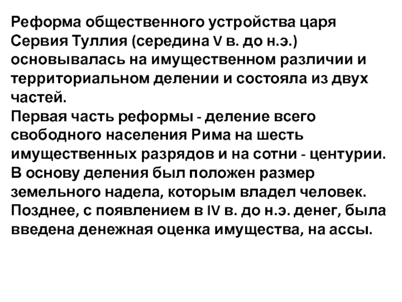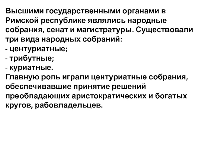 роль играли центуриатные собрания, обеспечивавшие принятие решений преобладающих аристократических и богатых кругов, рабовладельцев.