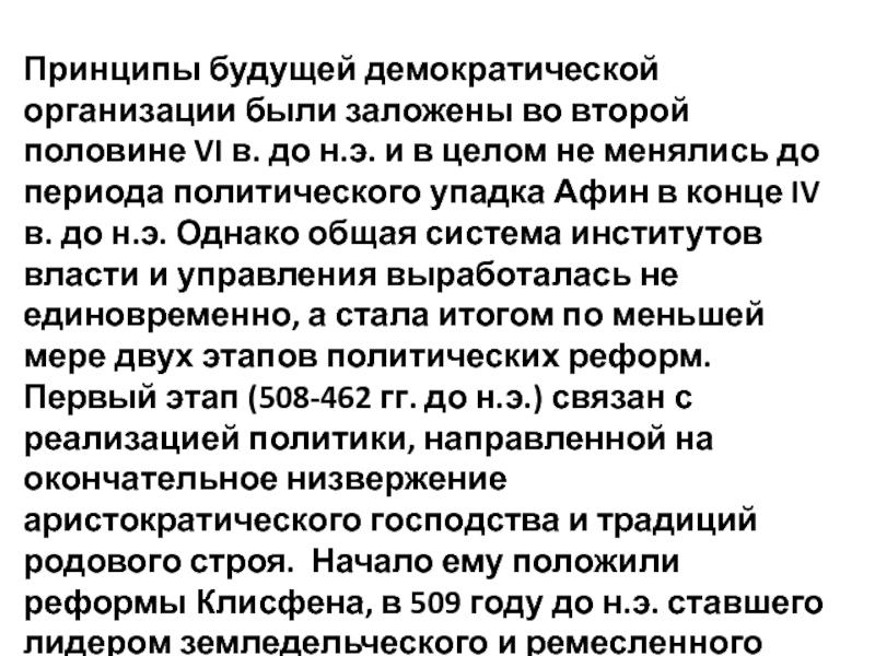Слайд 17Принципы будущей демократической организации были заложены во второй половине VI