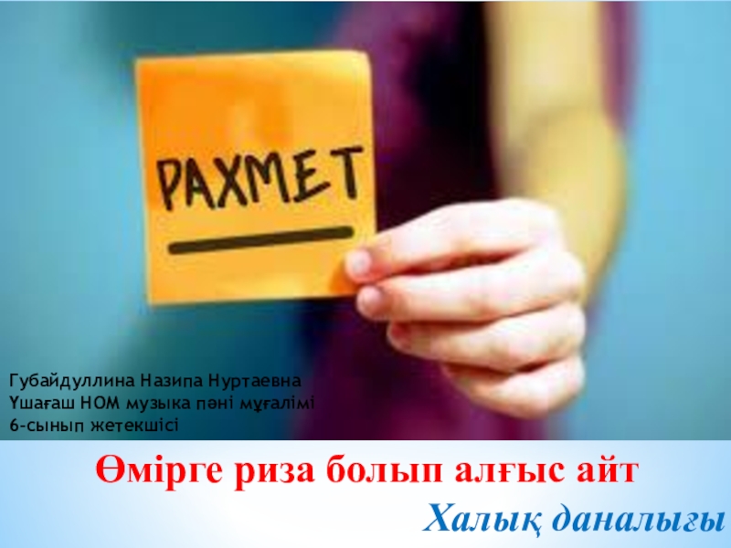 Өмірге риза болып алғыс айт Халық даналығы Губайдуллина Назипа Нуртаевна Үшағаш НОМ музыка пәні мұғалімі 6-сынып жетекшісі