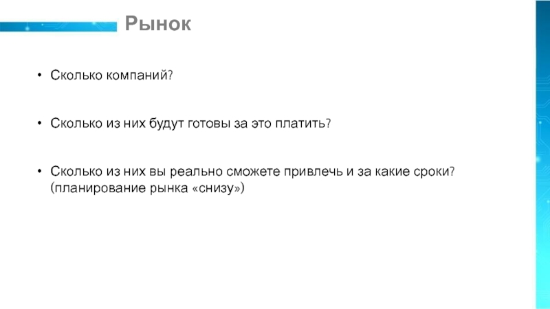 РынокСколько компаний?Сколько из них будут готовы за это платить?Сколько из них вы реально сможете привлечь и за