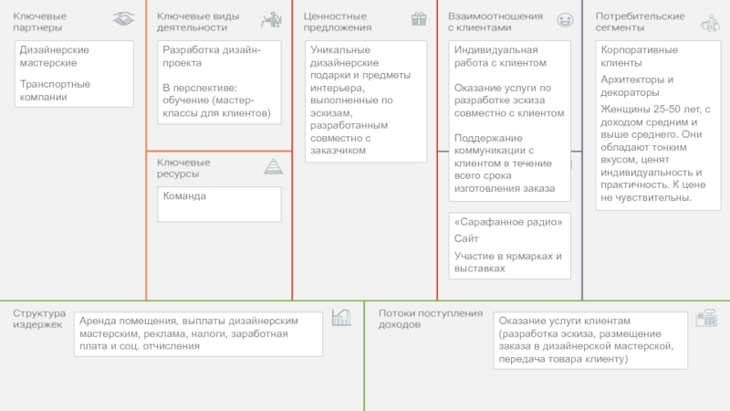 бизнес-модели с заполненными блоками. Это краткий(!) пример. Помните, не может