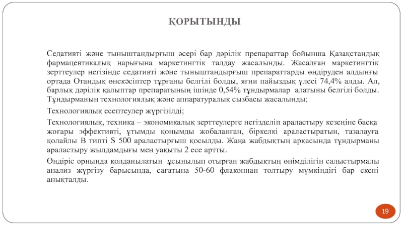 ҚР ФАРМАЦЕВТИКАЛЫҚ НАРЫҒЫНДАҒЫ ТҰНДЫРМАЛАРҒА МАРКЕТИНГТІК ШОЛУ