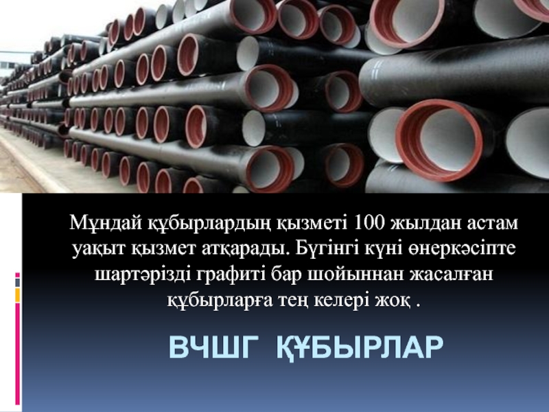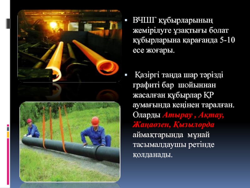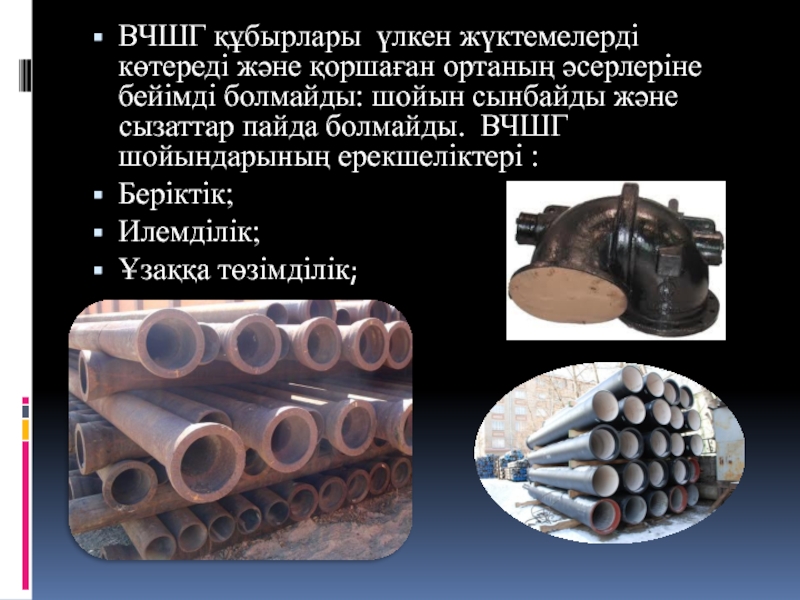 Слайд 14ВЧШГ құбырлары үлкен жүктемелерді көтереді және қоршаған ортаның әсерлеріне бейімді