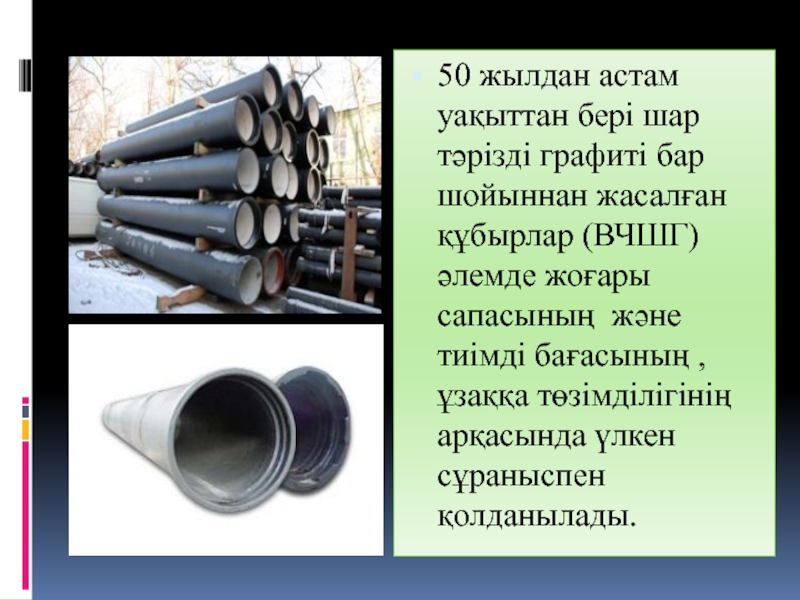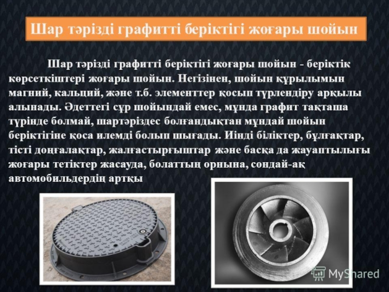 Слайд 1250 жылдан астам уақыттан бері шар тәрізді графиті бар шойыннан