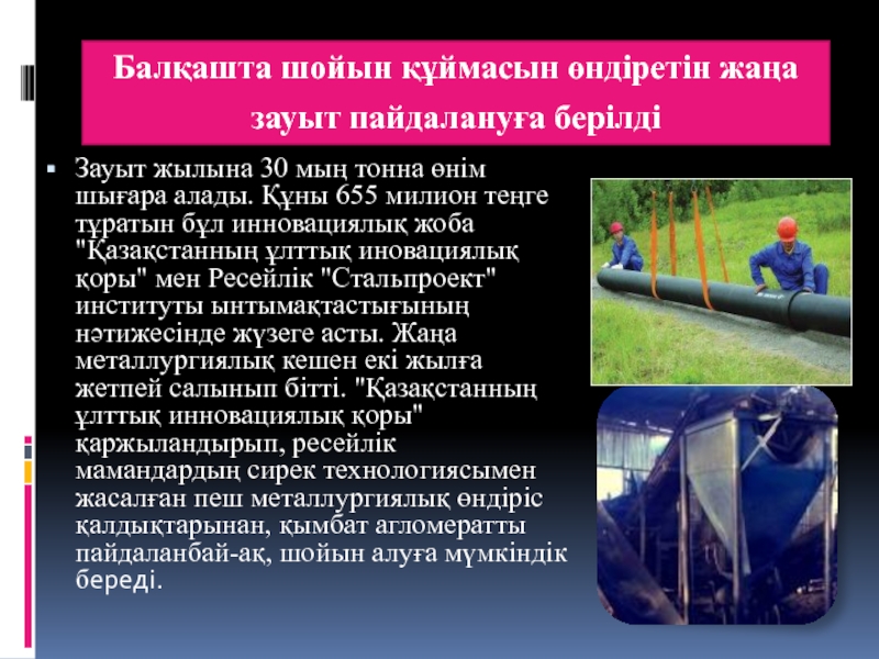 Слайд 26Балқашта шойын құймасын өндіретін жаңа зауыт пайдалануға берілді