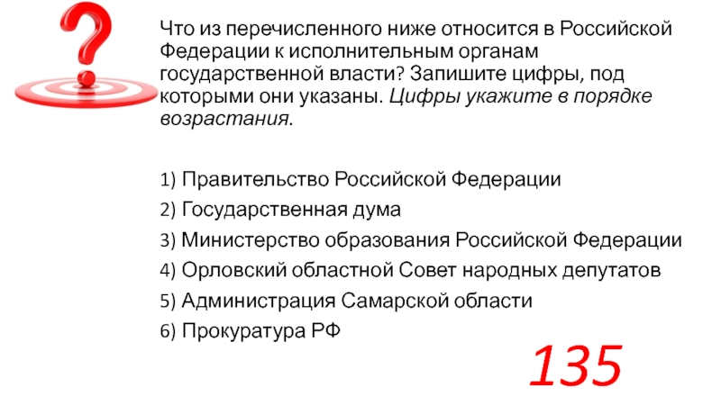 органам государственной власти? Запишите цифры, под которыми они указаны. Цифры укажите