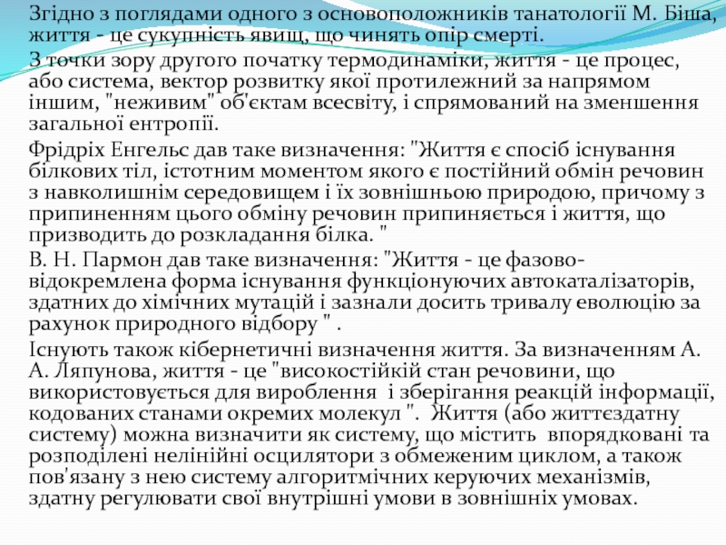 кількість визначень поняття "життя", що відображають різні підходи. Численні визначення