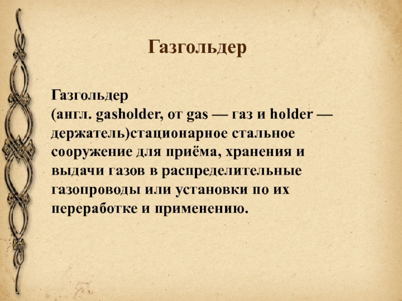 (англ. gasholder, от gas — газ и holder — держатель)стационарное