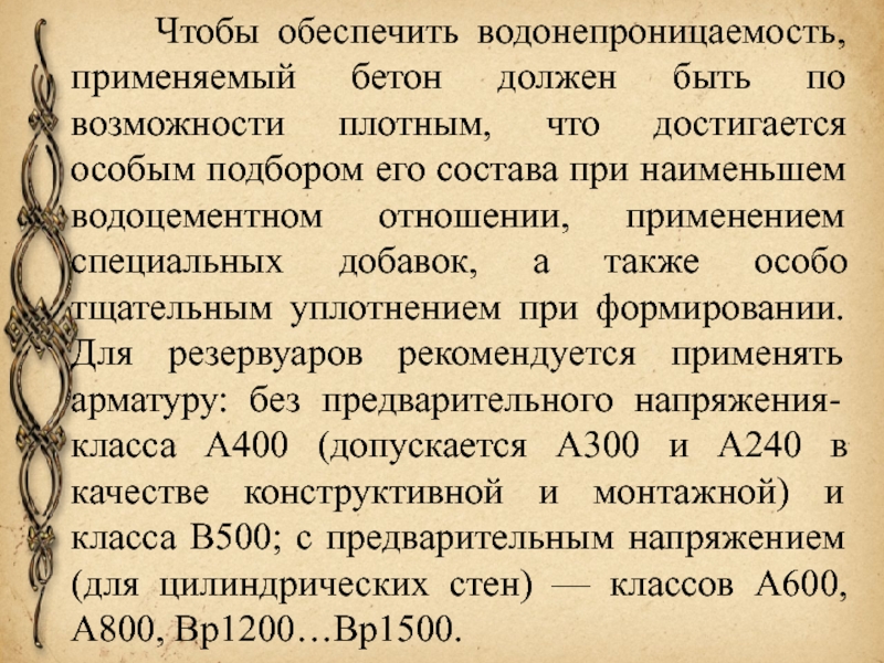 Слайд 8 Чтобы обеспечить водонепроницаемость, применяемый бетон должен быть