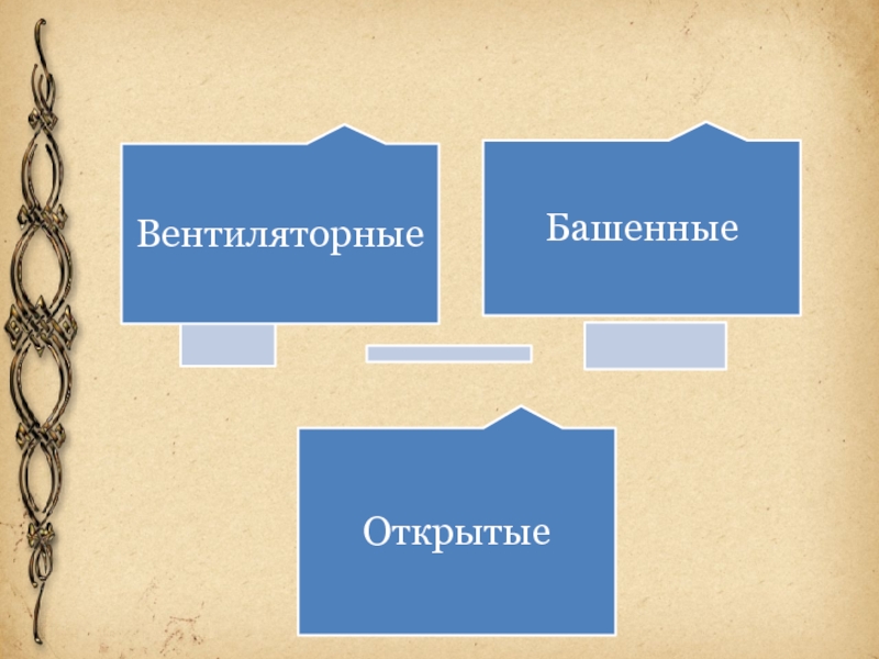 Слайд 63Градирни: а — вентиляторная; б — башенная; в — атмосферная;