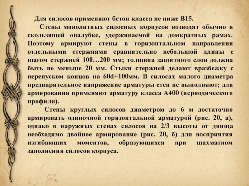 Слайд 46 Для силосов применяют бетон класса не ниже В15.