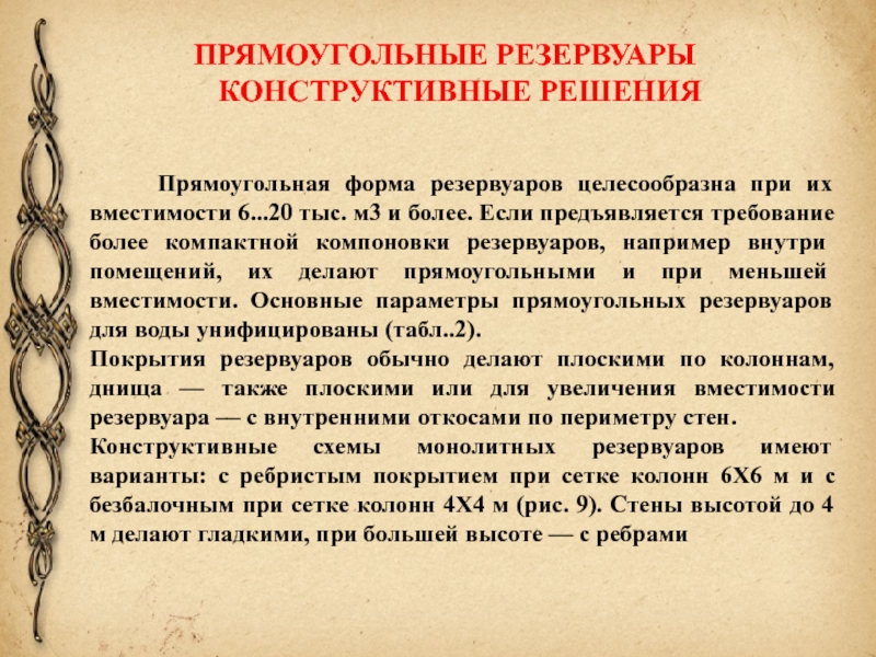 Слайд 3Резервуары для воды строят цилиндрической и призматической (прямоугольной в плане)