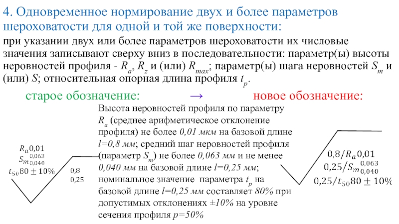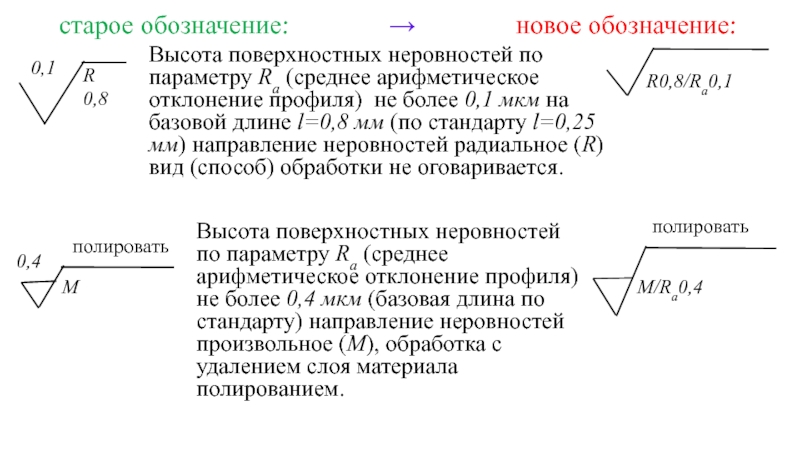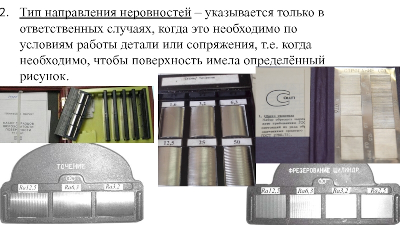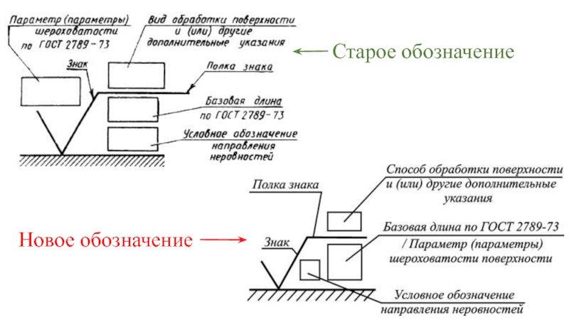 Данный способ обозначения применяют в основном для образцов сравнения шероховатости или образцовых деталей, а также для ответственных деталей с особыми требованиями по условию шероховатости.