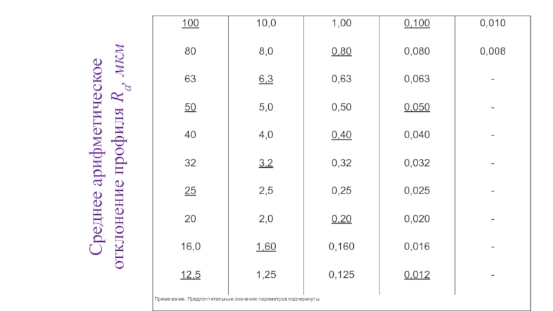 Числовые значения параметров Ra, Rz и Rmax задают в микрометрах.