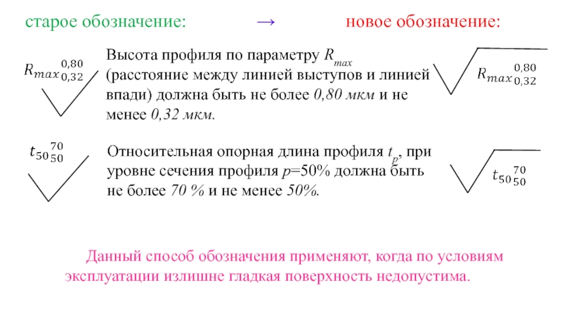 Данный способ обозначения применяют, когда по условиям эксплуатации излишне гладкая поверхность недопустима.