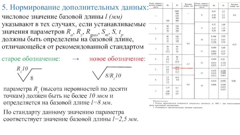 параметра Rz (высота неровностей по десяти точкам) должен быть не более 10 мкм и определяется на базовой длине l=8 мм.