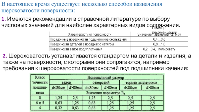2. Шероховатость устанавливается стандартом на детали и изделия, а также на поверхности, с которыми они сопрягаются, например требования к шероховатости поверхностей под подшипники качения: