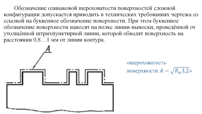 Если шероховатость поверхностей, образующих контур, должна быть одинаковой, обозначение шероховатости нанося один раз.