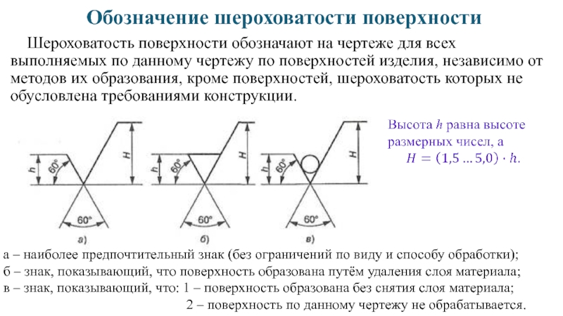 в – знак, показывающий, что: 1 – поверхность образована без снятия слоя материала;