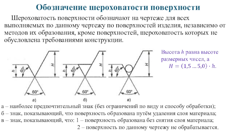 в – знак, показывающий, что: 1 – поверхность образована без снятия слоя материала;