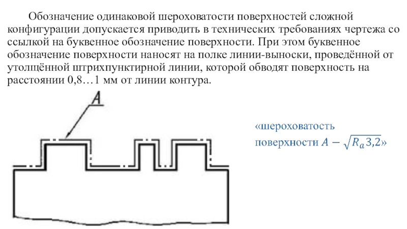 Если шероховатость поверхностей, образующих контур, должна быть одинаковой, обозначение шероховатости нанося один раз.