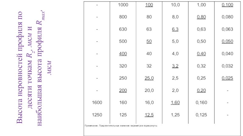 Числовые значения параметров Ra, Rz и Rmax задают в микрометрах.